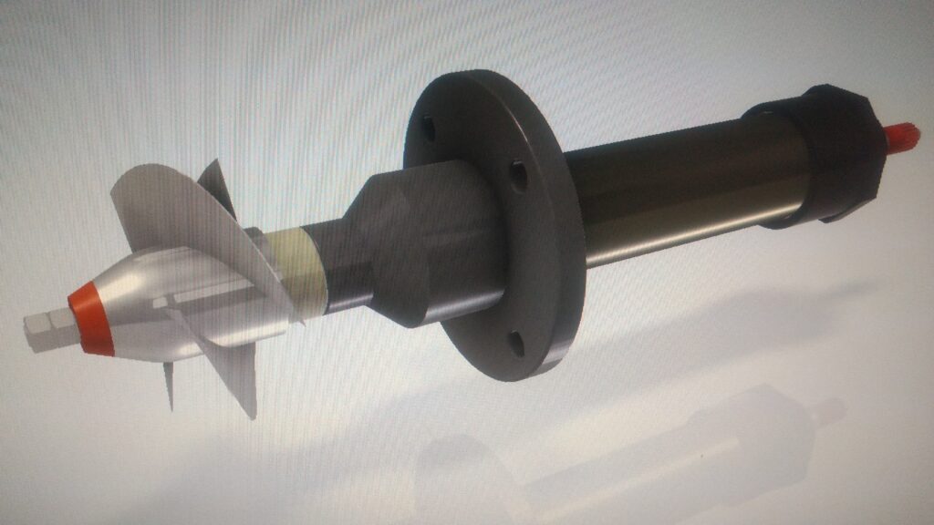 La LH-140 se clasifica como una turbina de flujo axial porque el agua atraviesa sus álabes siguiendo una trayectoria paralela a su eje de rotación, de forma similar a como el aire pasa a través de un ventilador.